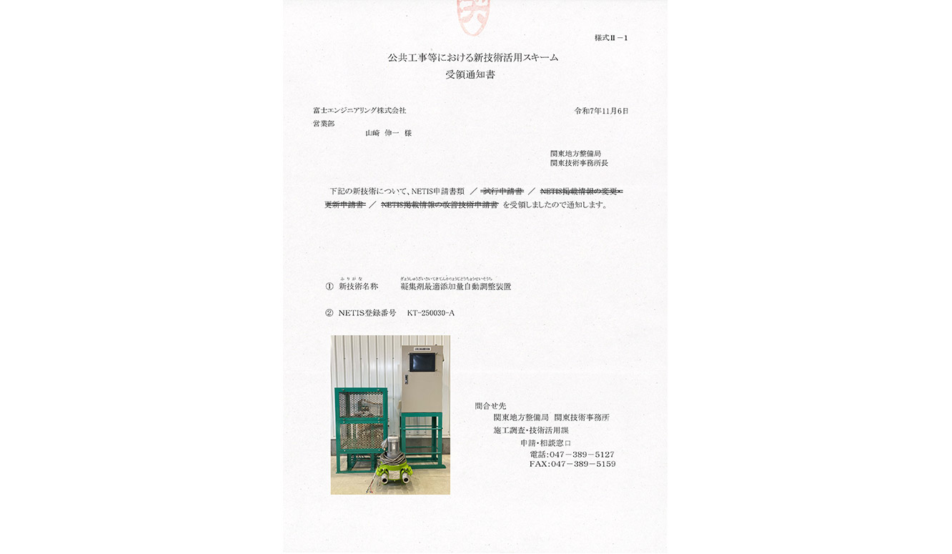 Mud improvement machine建設現場から発生する大量の汚泥や流動性の高い土砂は、周囲環境への配慮やそのための用地確保の意味からも工事関係者の大きな問題になっています。