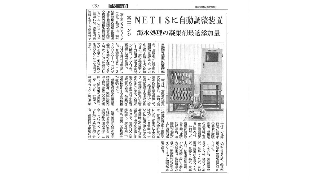 Muddy water treatment私たち富士エンジニアリングは、この地球の豊かな大地と環境空間を守るため、そして地球上に生きる全ての生命のため、未来に貢献することを目指した水処理技術を開発いたしました。